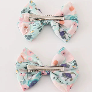 Cambria Blue Floral Print 2pc Hair Bow Set