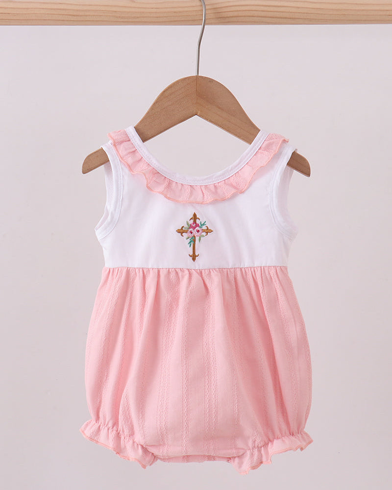 The Easter Morning Cross Jacquard Girl Bubble is a precious faith-inspired outfit designed especially for baby girls. This timeless bubble romper features a soft white bodice with a beautifully embroidered floral cross, symbolizing the joy and meaning of Easter.