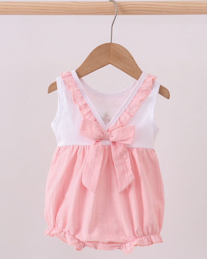 The light pink jacquard bubble bottom adds texture and elegance, while gentle ruffle accents at the neckline and leg openings create a sweet, classic silhouette. Crafted for comfort and charm, this bubble is perfect for Easter Sunday, church services, spring portraits, and special family celebrations.
