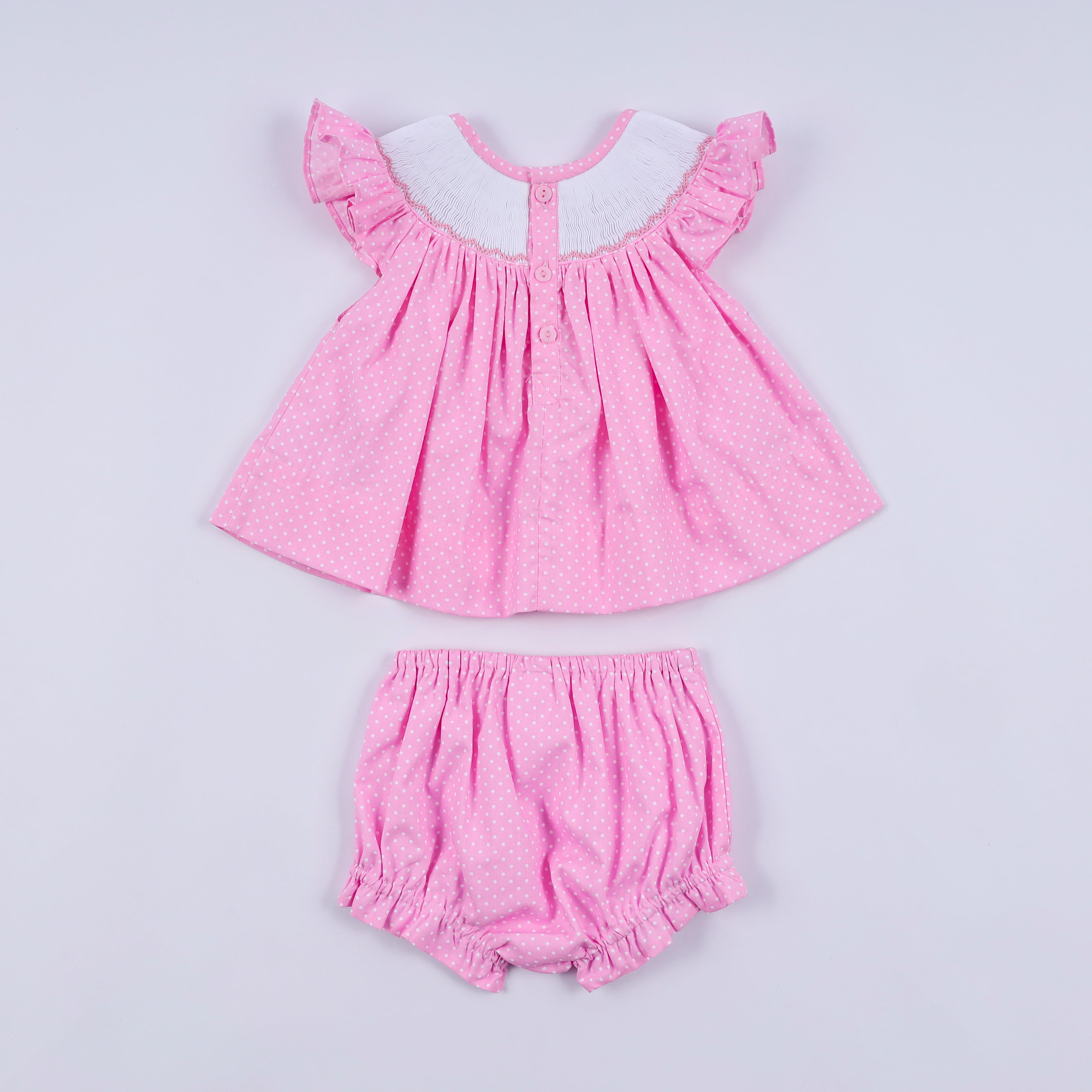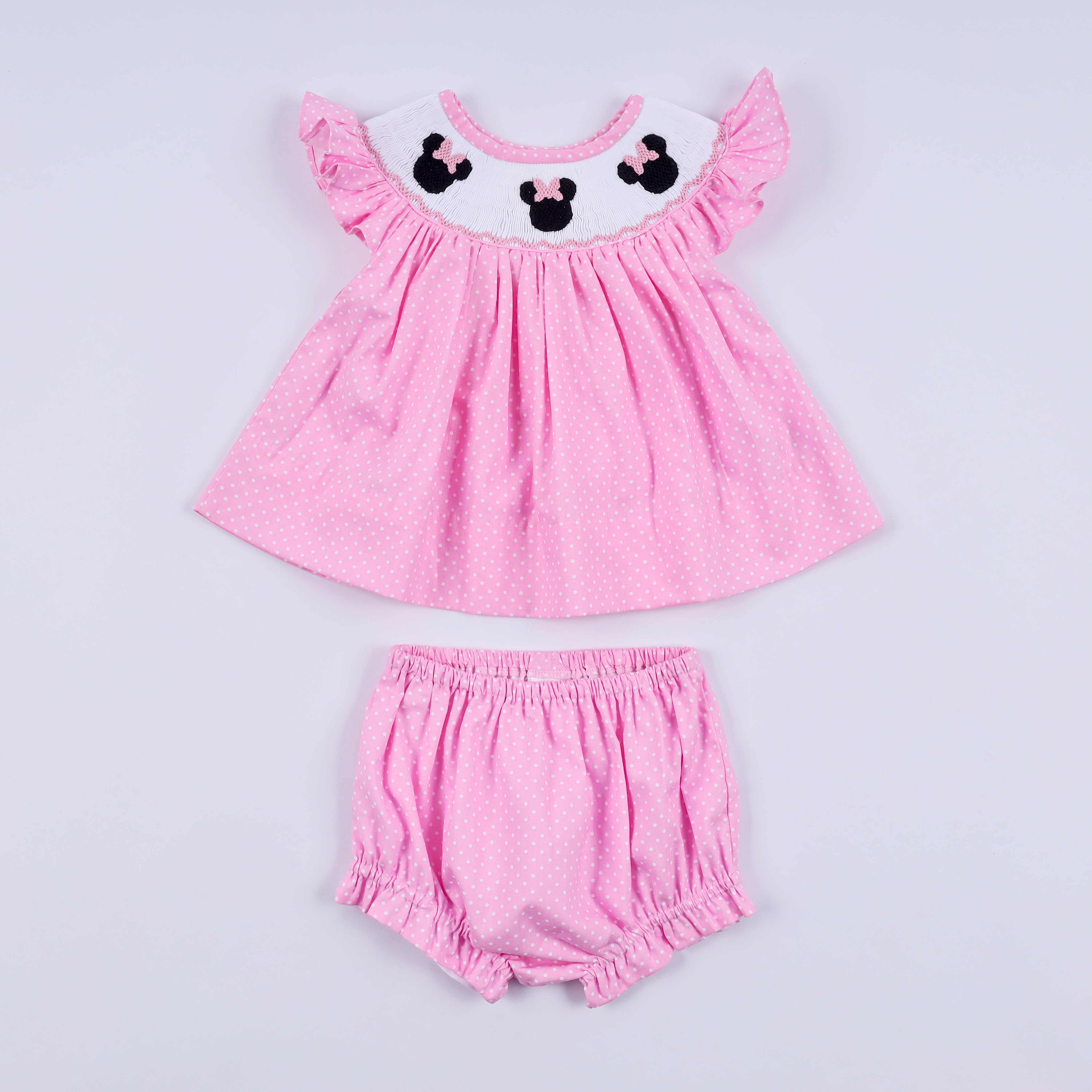 Magic Mouse Pink Polka Dot Smocked Ruffle Bloomer Set