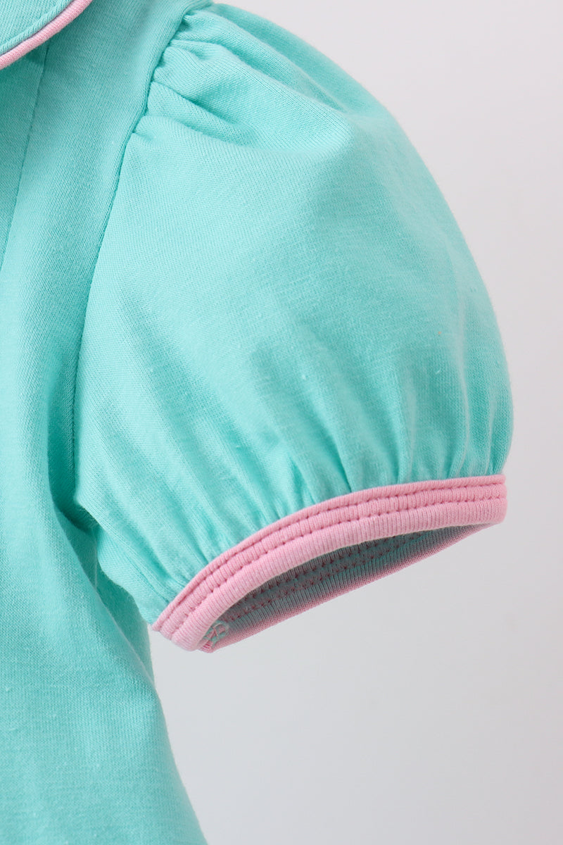 - Peter Pan collar with pink trim for a classic touch