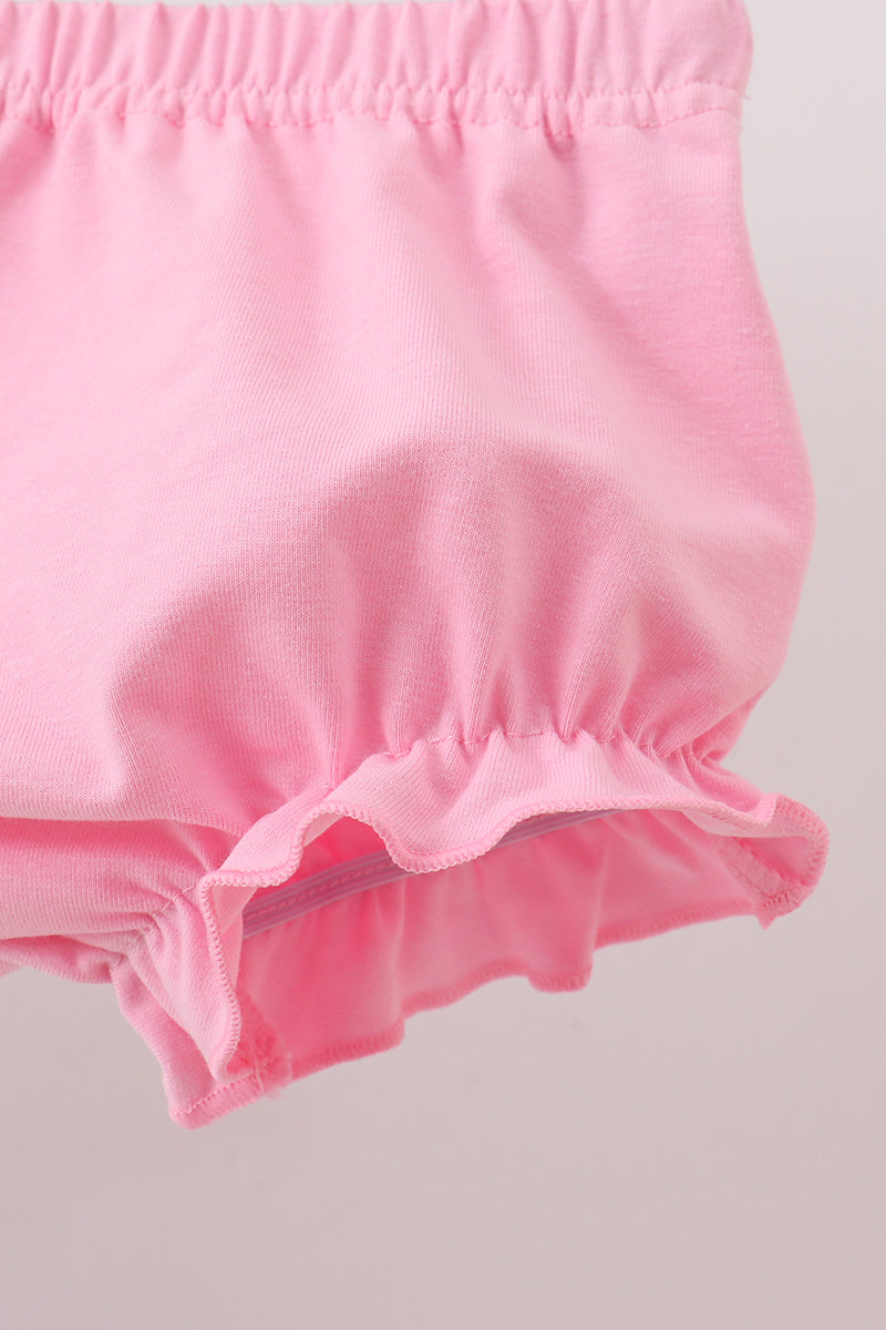 - Matching pink bloomers with gentle elastic for comfort