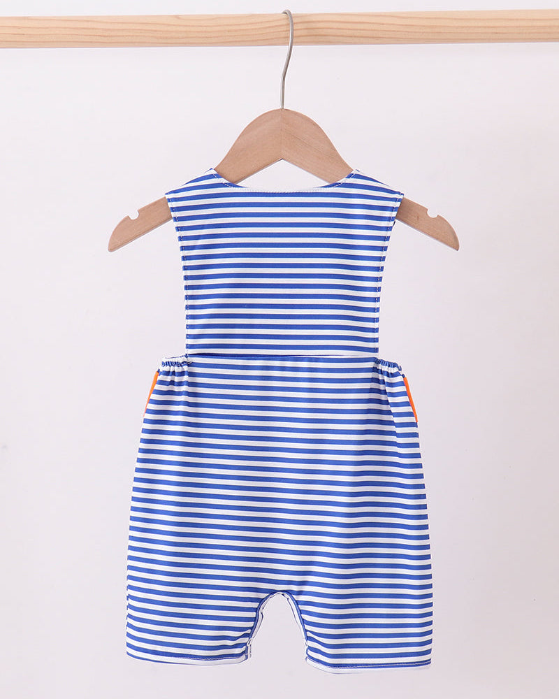 Cheer on the Gators in timeless Southern style with the Gators Game Day Smocked Boy JonJon. Designed with crisp blue and white stripes, bold orange accents, and classic smocked Gators embroidery across the chest, this JonJon is the perfect game day look for your littlest fan.