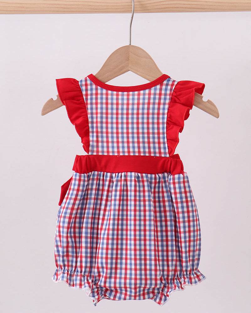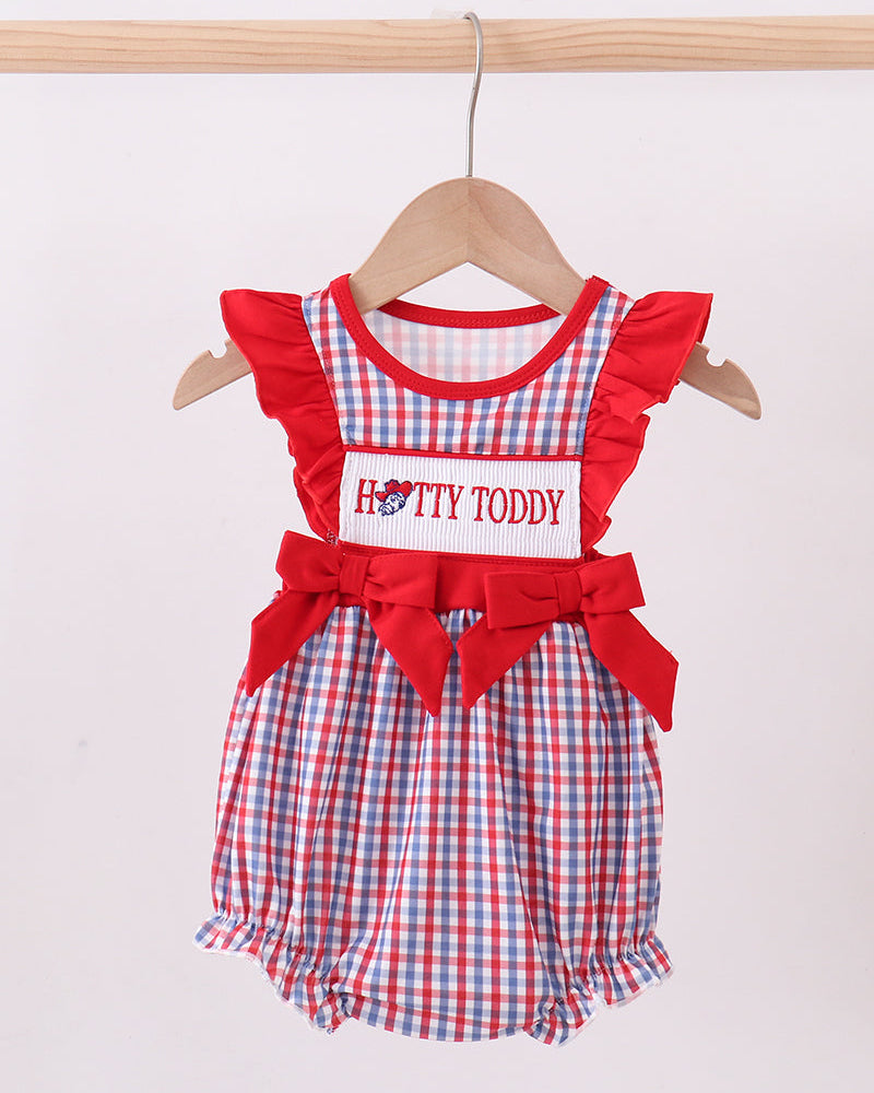 Dress your little fan in timeless Southern charm with the Hotty Toddy Game Day Smocked Ruffle Bubble. This adorable bubble features classic red, white, and blue gingham paired with flutter ruffle sleeves, a statement bow waist, and a hand-smocked “Hotty Toddy” design front and center.