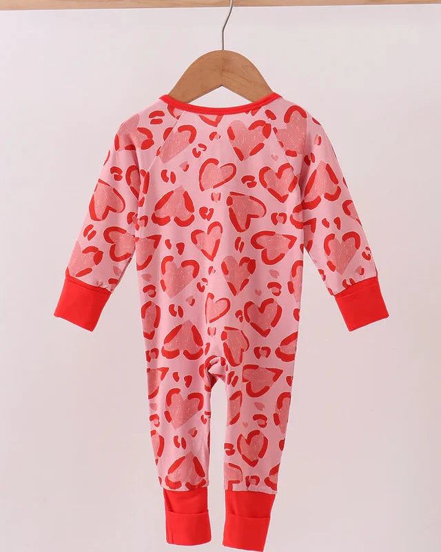 With stretchy, breathable material and foldable cuffs for growing room, this romper blends style, comfort, and practicality for your sweetest little Valentine.
