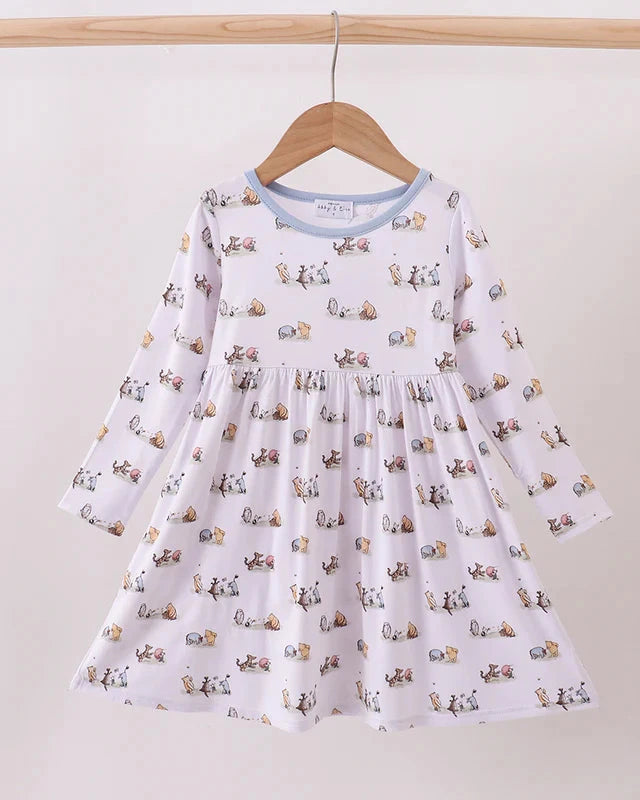 Your little one will twirl, play, and snuggle in style with our Honey Bear Hugs Bamboo Dress. Designed with an enchanting woodland bear-inspired print, this dress combines whimsy with everyday comfort.
