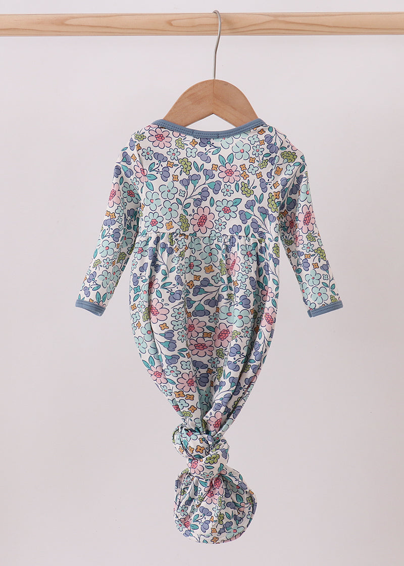 The knotted bottom design allows for quick diaper changes while keeping baby cozy and snug. With gentle long sleeves and a stretch neckline for easy dressing, this gown is perfect for naptime, bedtime, or as a meaningful baby shower gift.