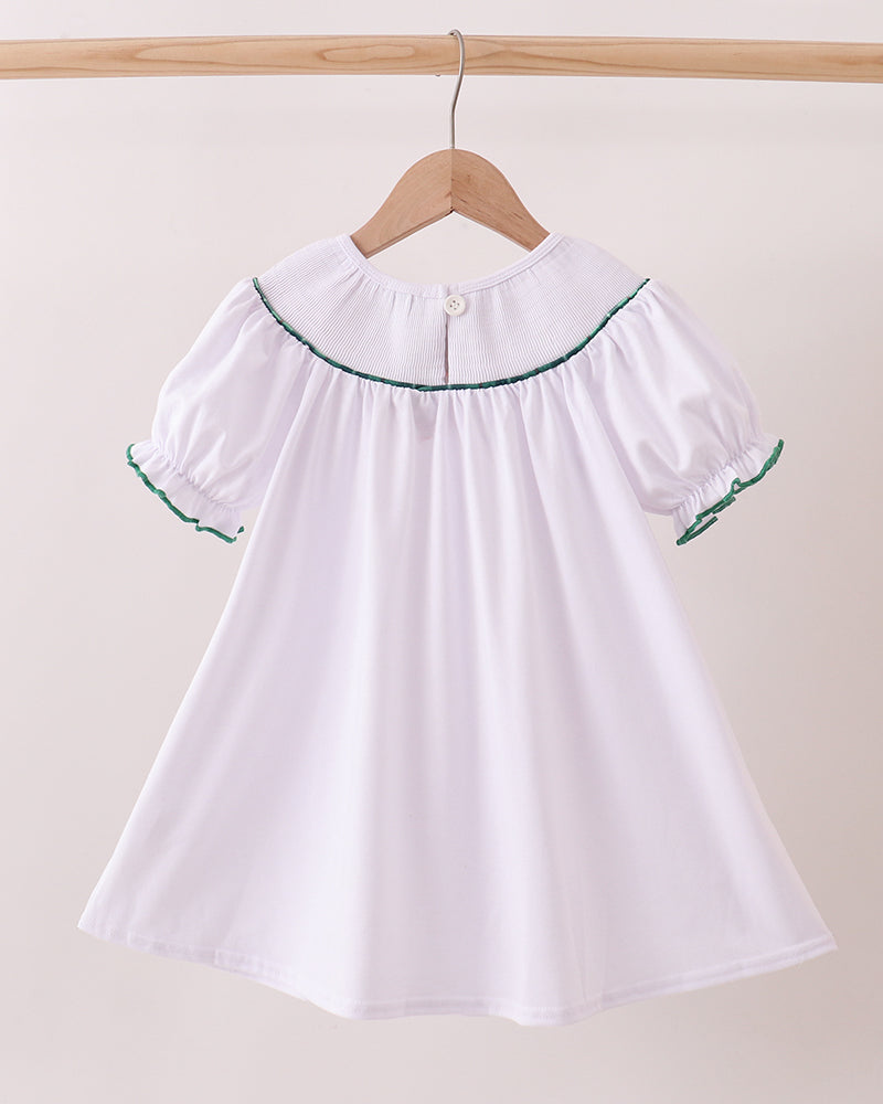- 🎄 Classic Holiday Style – White dress with green trim for a festive finish.
