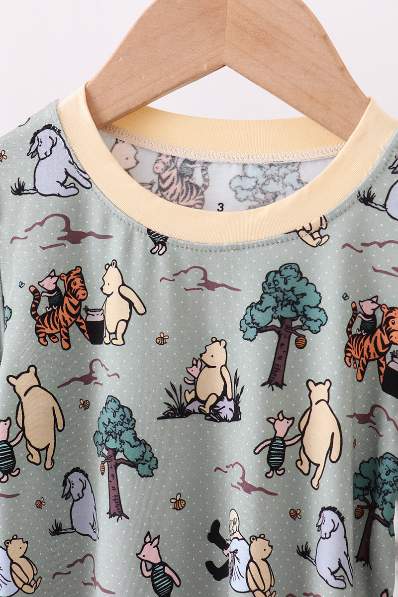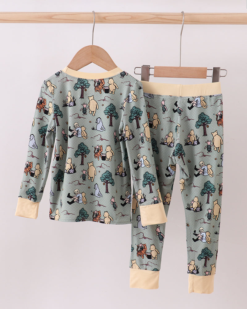 Drift into sweet dreams with our Meadow Friends Bamboo Pajama Set. Featuring a whimsical woodland character print on a soft green backdrop, this cozy two-piece pajama set is designed with both comfort and charm in mind.