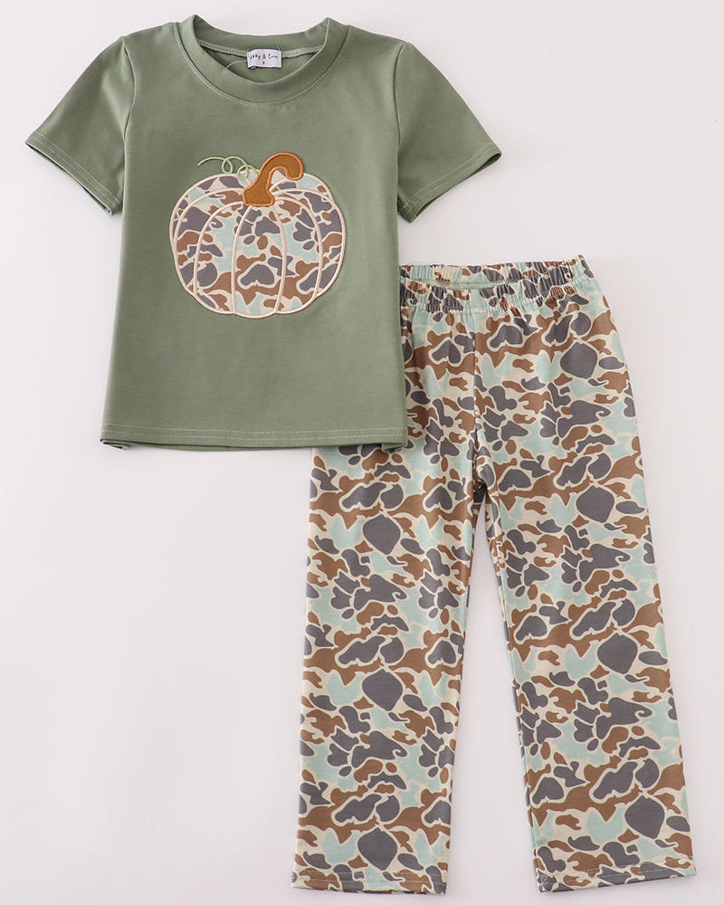 Camo Pumpkin Applique Boy Pants Set – Fall-Ready Style for Little Adventurers