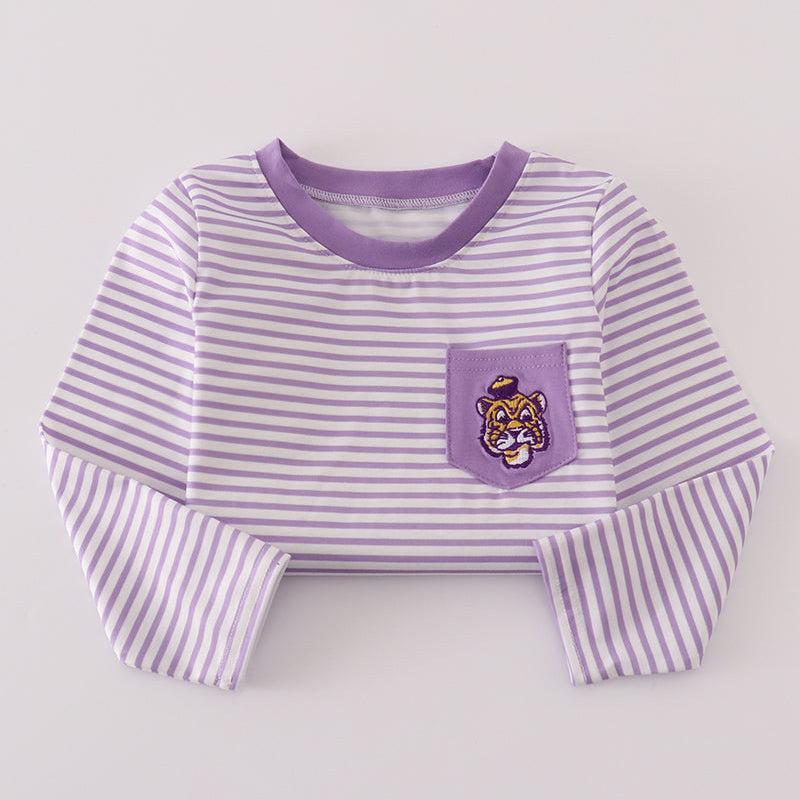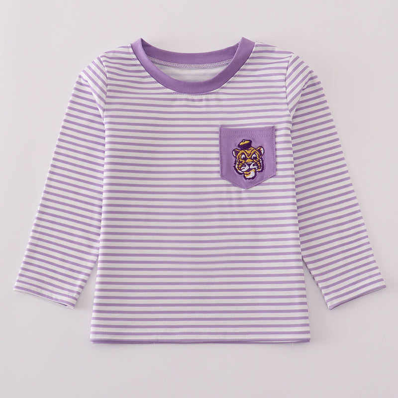 Geaux Tigers Purple Stripe Boy Long Sleeve Top