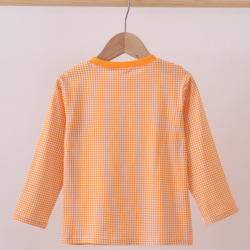 Bring a touch of Southern charm to your little one’s wardrobe with our Little Vols Gingham Boy Pocket Top. Featuring a classic orange gingham pattern and a bold embroidered pocket detail, this long-sleeve top is perfect for game days, school outfits, and family photos.