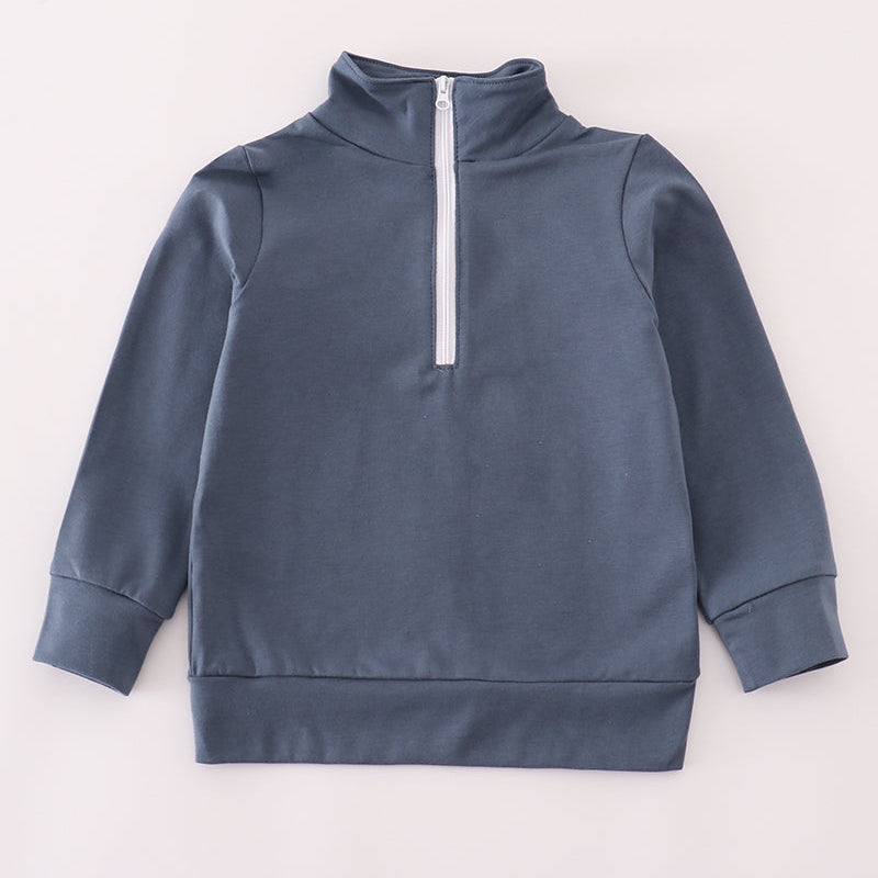 Crafted from soft, breathable fabric in a rich navy hue, it provides warmth without bulk, making it perfect for school days, playdates, and cool-weather adventures. The mock neck and zip-up back offer easy on-and-off dressing, while the ribbed cuffs ensure a snug fit.