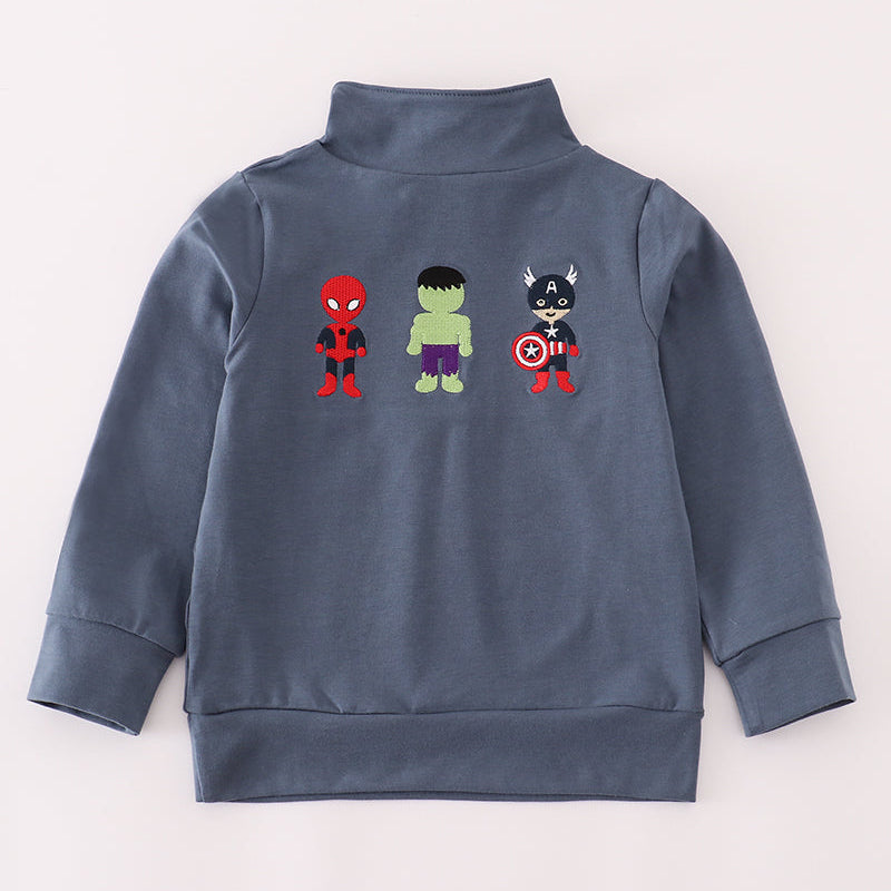 Mighty Heroes Embroidered Navy Boy Pullover