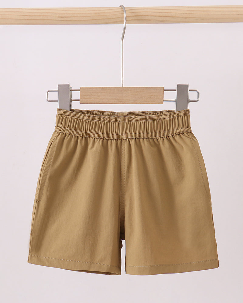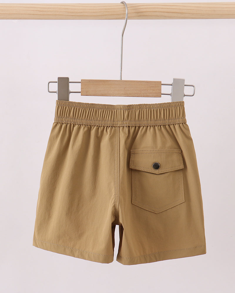 The neutral latte color pairs effortlessly with graphic tees, polos, and button-downs, making these shorts perfect for playtime, school days, or casual outings. An elastic waistband ensures easy on-and-off wear while providing a secure, flexible fit.