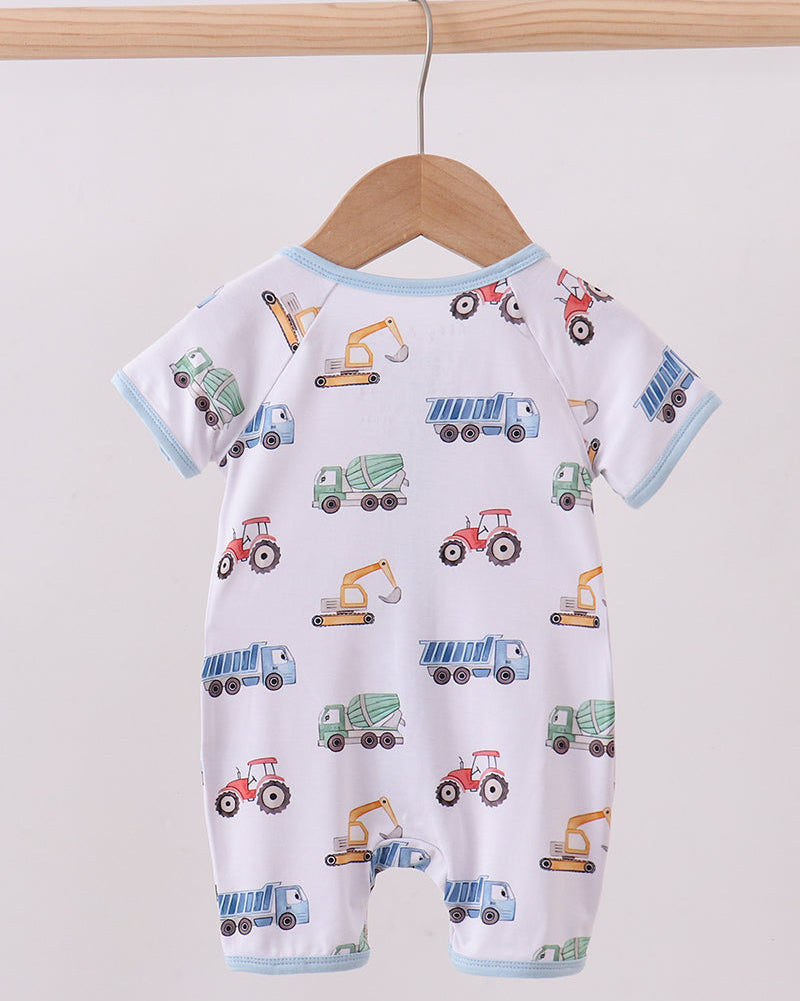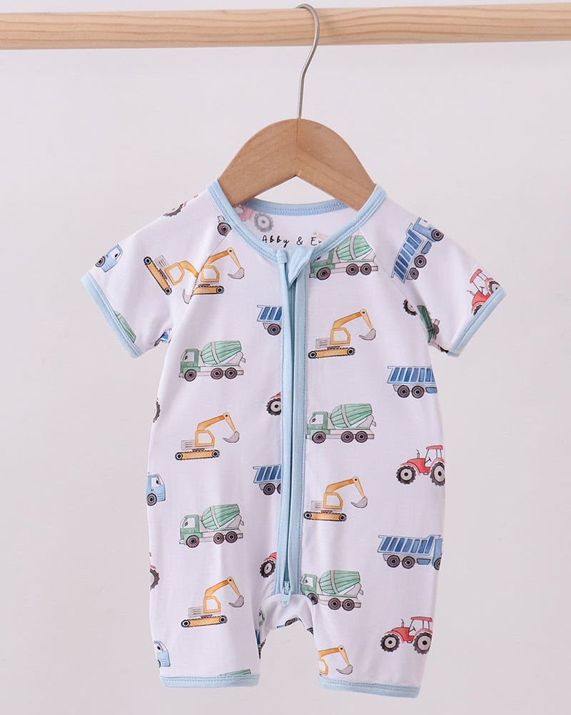 The Dig & Drive Construction Bamboo Baby Romper is a must-have for little builders. Featuring an adorable all-over construction truck print with excavators, dump trucks, cement mixers, and tractors, this romper brings playful charm to everyday baby wear.