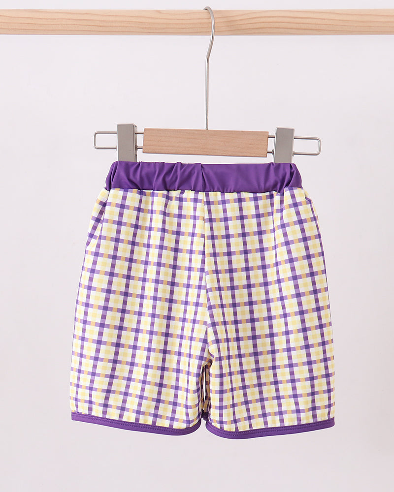 Make a splash in Tiger style with the LSU GEAUX Plaid Boy Swim Trunks! Designed in classic purple and gold plaid, these swim trunks feature an embroidered LSU tiger and “GEAUX” detail for a bold game day look that works just as well at the pool or beach.
