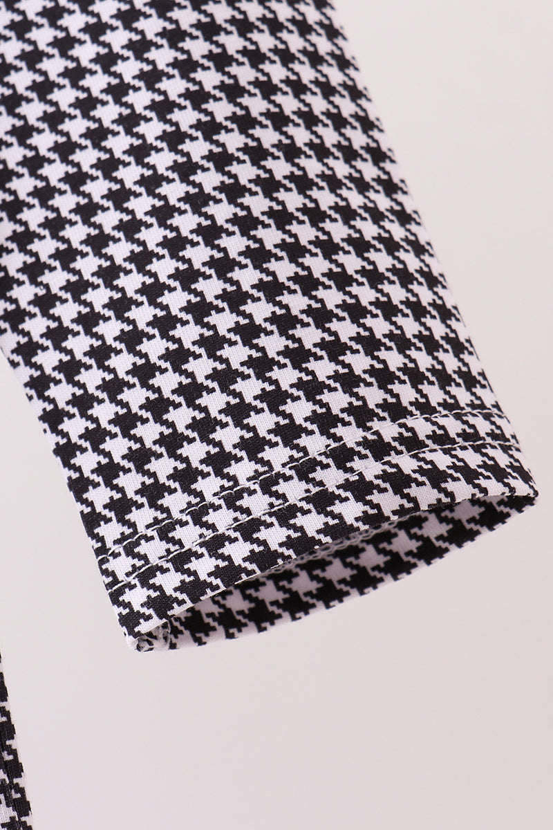 • Iconic black and white houndstooth pattern