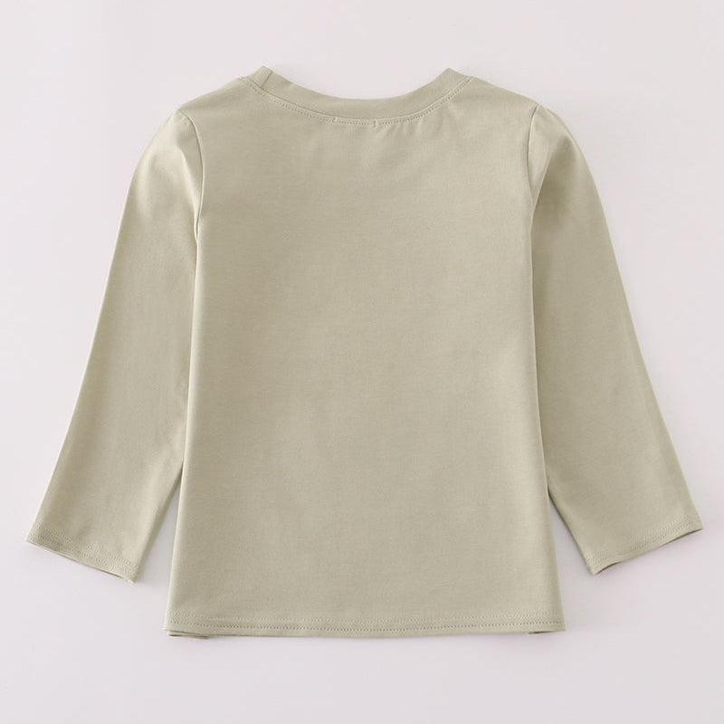 Get your little one ready for big adventures with our Bulldozer Applique Boy Top. This long sleeve tee is crafted from a soft, breathable cotton blend for all-day comfort. Designed in a neutral sage green, it features a playful bulldozer applique at the center — making it a favorite for kids who love construction trucks and machines.