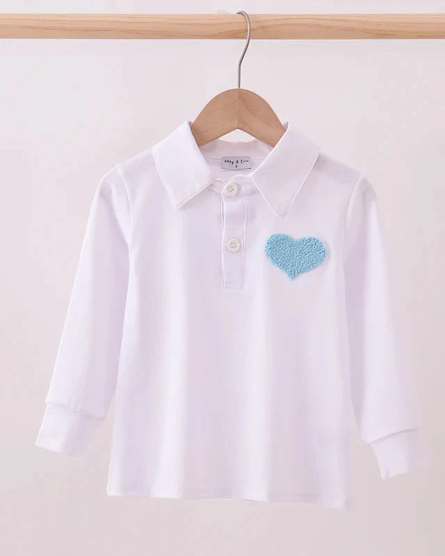 Timeless charm meets sweet Valentine style in our French Knot Blue Heart Boy Long Sleeve Shirt 💙✨