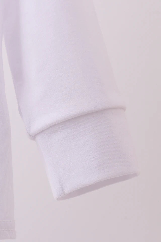 Designed with a traditional button-front collar and hand-stitched French knot heart, this top brings boutique elegance to your little gentleman’s wardrobe. The soft knit fabric ensures all-day comfort, making it perfect for school, church, photos, and special celebrations.