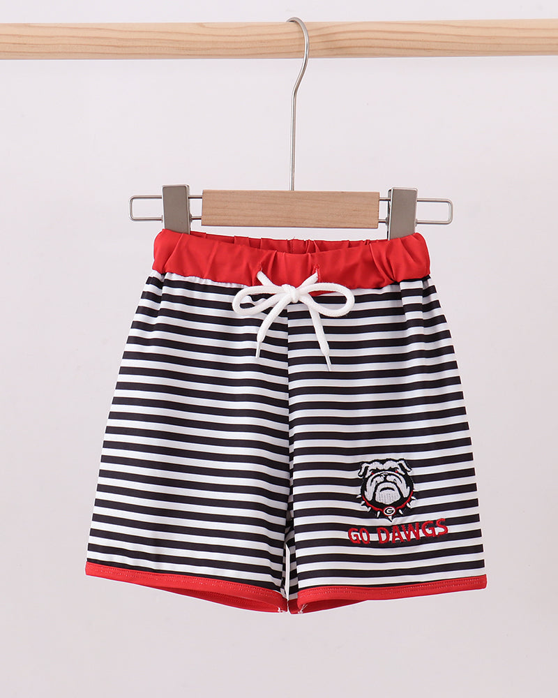 Go Dawgs Sideline Smocked Stripe Boy Swim Trunks
