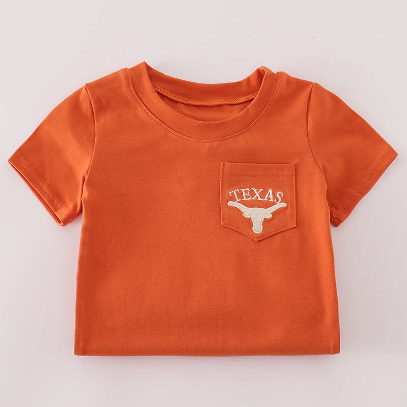 Your tiniest Longhorn fan will be game-day ready in our Hook ’Em Cutie Texas Baby Romper! Made in classic burnt orange, this soft and comfy romper features a front pocket embroidered with a Texas Longhorn emblem—perfect for showing team pride from day one. The short sleeves and breathable fabric make it great for warm weather, while snap closures along the legs ensure easy diaper changes.