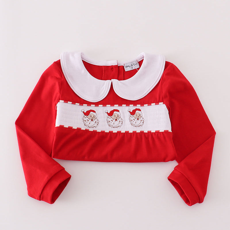 - Smocked Santa Claus embroidery across the chest for a timeless holiday touch.