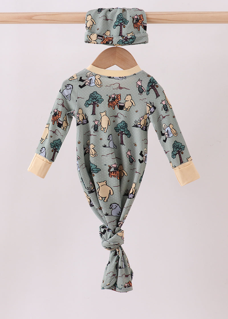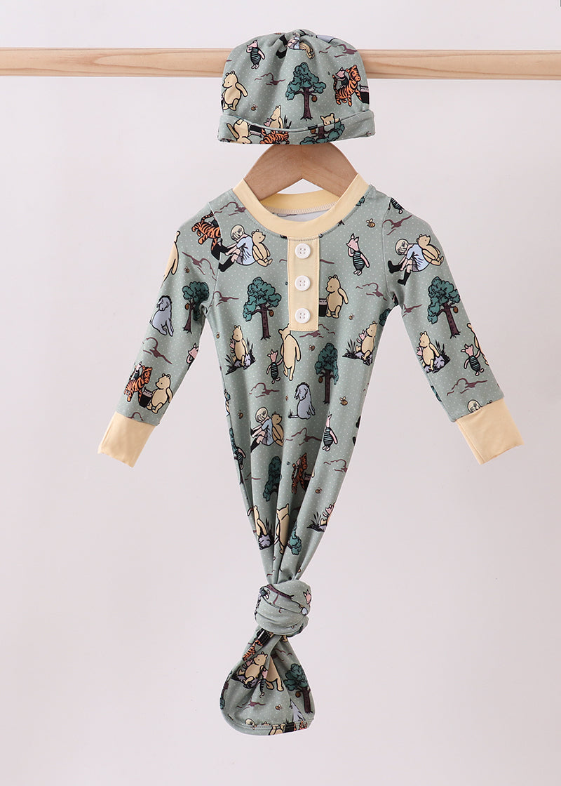 The knotted gown design allows for quick diaper changes, while fold-over cuffs keep baby’s hands warm and scratch-free. Paired with a matching hat, this set makes the perfect gift for newborns, baby showers, or bringing home from the hospital.