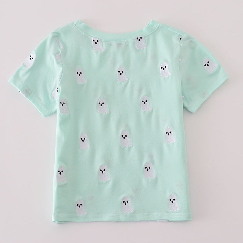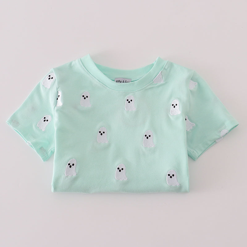 Let your little one embrace playful spookiness with our Pastel Mystical Ghost Embroidered Boy Top. Made from soft, breathable cotton, this adorable mint green t-shirt features charming white ghost embroideries scattered across the front, adding a fun and whimsical touch to their everyday outfit. Perfect for Halloween season or year-round ghostly adventures, this top combines comfort with a dash of spooky-cute style.