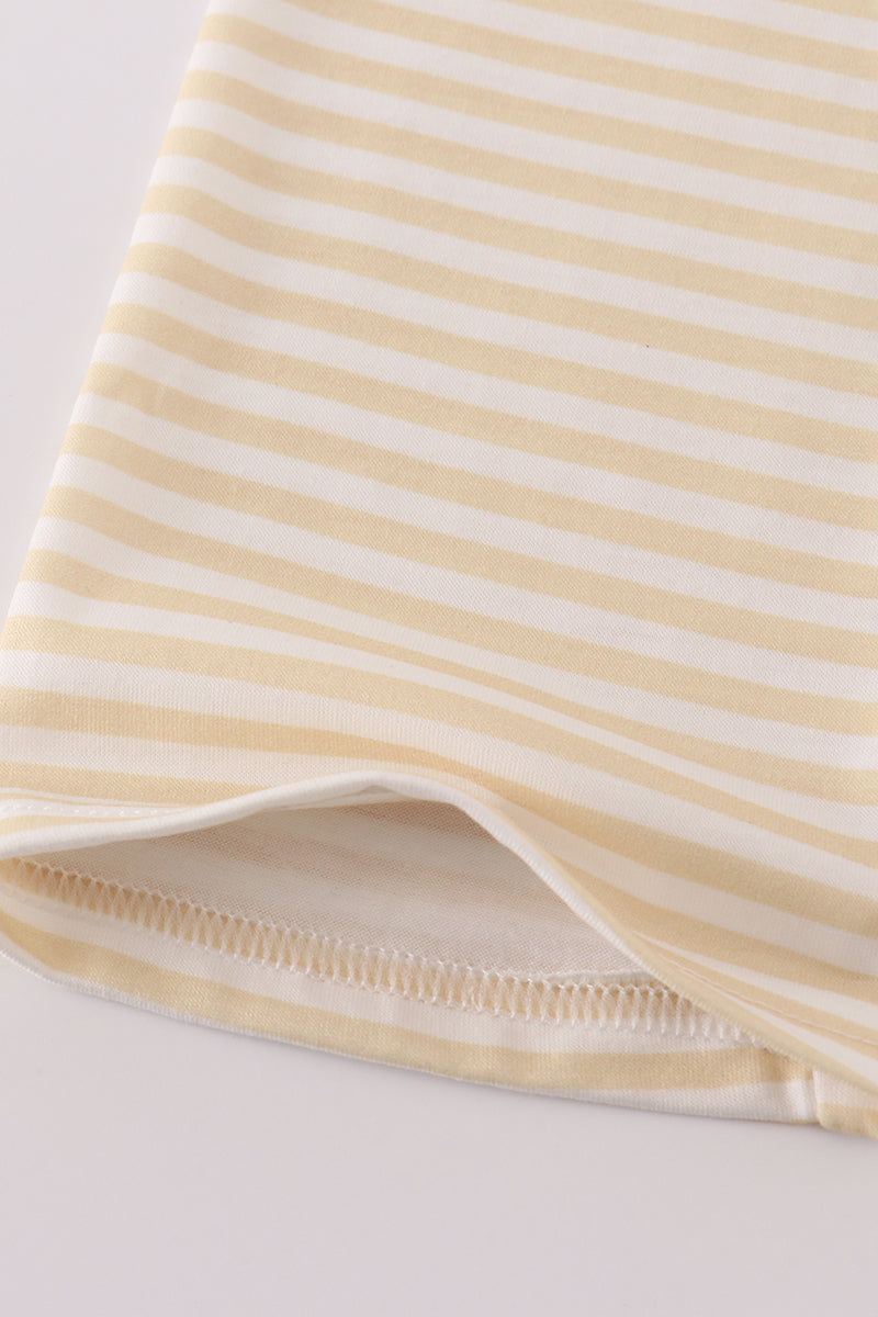 Paired with soft cream-and-beige striped pants, the outfit is designed for comfort and ease of movement. The elastic waistband ensures a perfect fit for active toddlers, making it ideal for playdates, casual outings, or everyday wear.