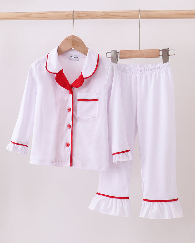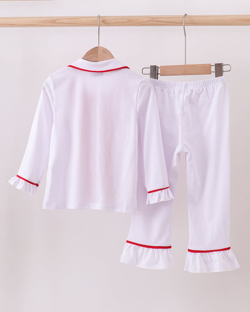 Sweet and stylish, the Candy Cane Kisses White Ruffle Lounge Set is the perfect holiday pajama set for your little one. Designed in crisp white with festive red piping and playful ruffle details, this set captures the magic of the season while keeping comfort in mind.