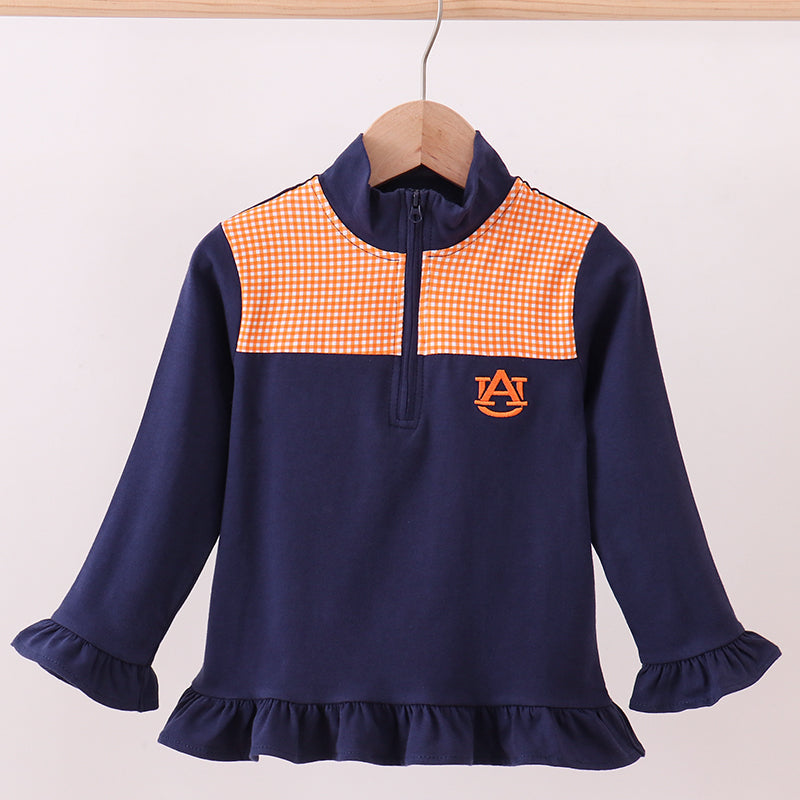 Your little Tiger will shine in the Auburn Pride Gingham Ruffle Girl Pullover! This charming quarter-zip top blends southern sweetness with bold Auburn spirit — perfect for cheering on the Tigers in style.