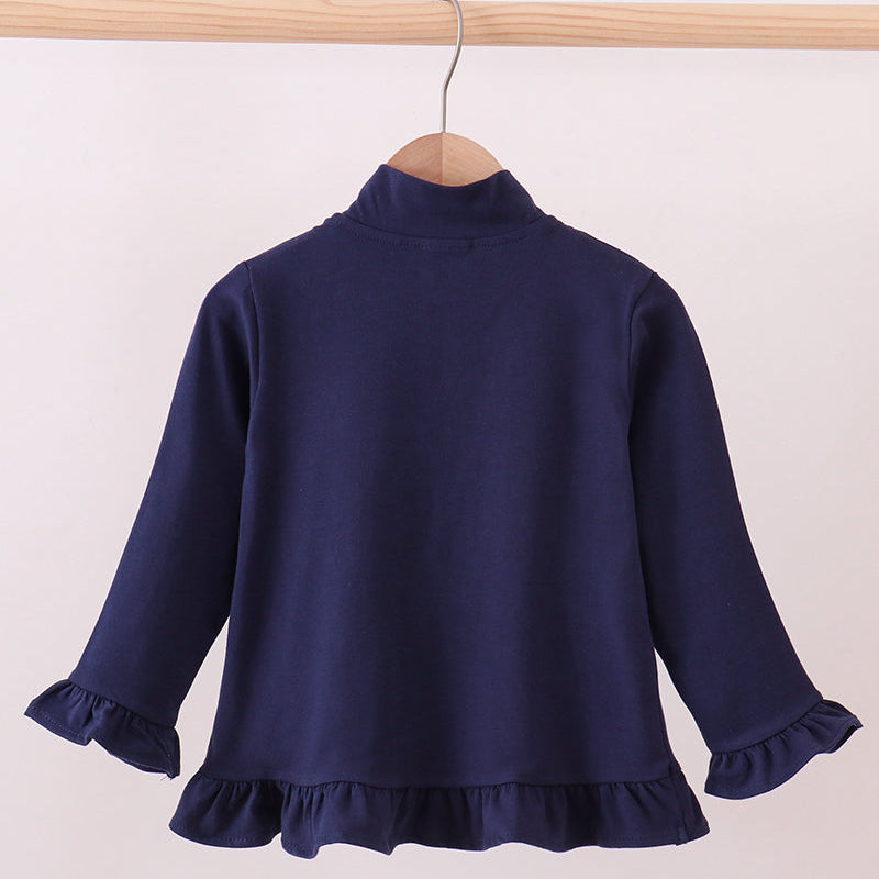Crafted in deep navy blue with a striking orange gingham yoke, it features an embroidered Auburn logo for a classic team touch. The ruffled cuffs and hem add a darling finish that’s full of movement and charm.