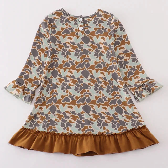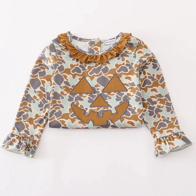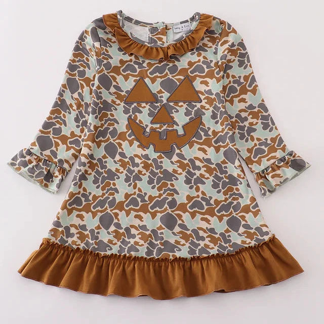 Camo Jack-O’-Lantern Applique Halloween Ruffle Girl Dress