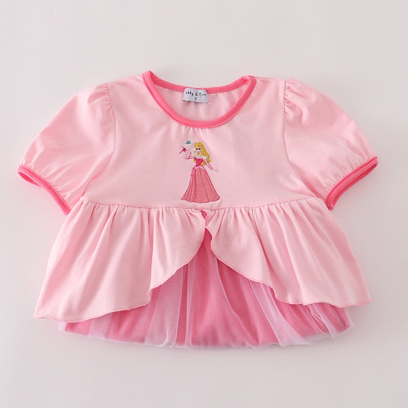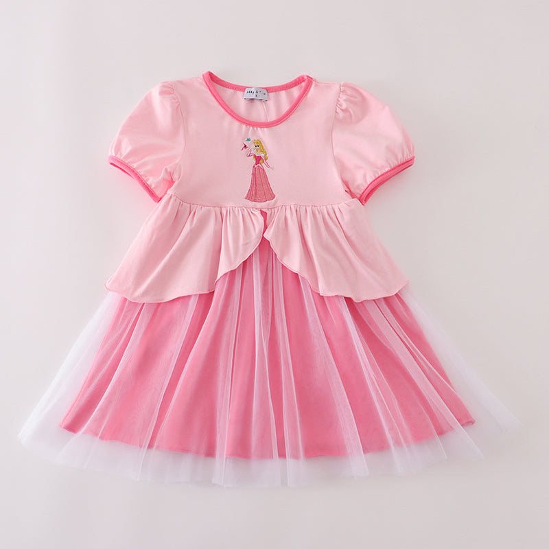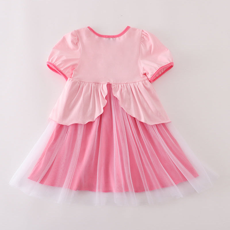 Make every day feel like a fairytale in our Dreaming Beauty Princess Ruffle Dress. This sweet pink dress features a soft knit bodice with an embroidered princess detail, fluttery layered ruffles at the waist, and a dreamy tulle skirt made for twirling. Gentle puff sleeves and stretch fabric keep little ones comfortable while giving that picture-perfect princess look.