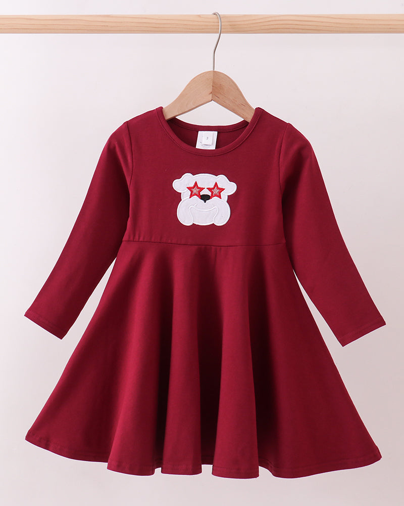 This adorable maroon knit dress features a standout bulldog applique with bright star eyes — the perfect blend of cute and spirited. Made from soft, breathable fabric with a twirl-worthy skirt, it keeps her comfy whether she’s cheering on game day, taking school pictures, or dressing up for everyday Bulldog pride.
