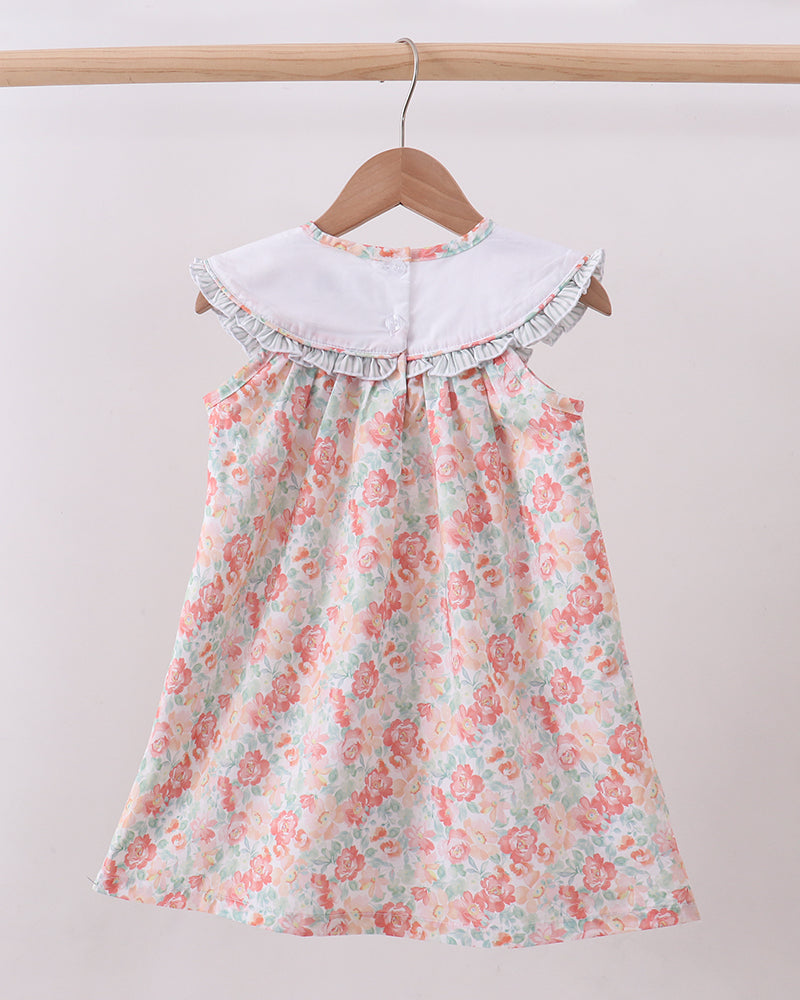 The soft ruffle yoke adds a classic touch while the flowy skirt creates a comfortable, breezy fit perfect for warm days. Its lightweight fabric keeps little ones comfortable while looking picture-perfect for special moments.