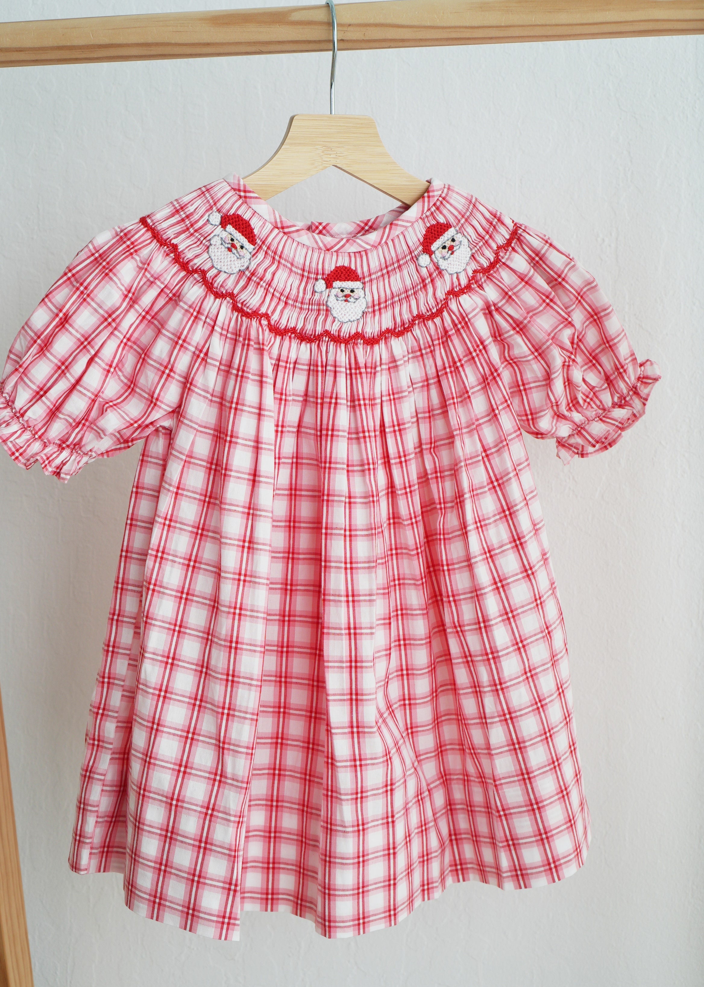 - 🎅 Hand-smocked Santa designs across the neckline