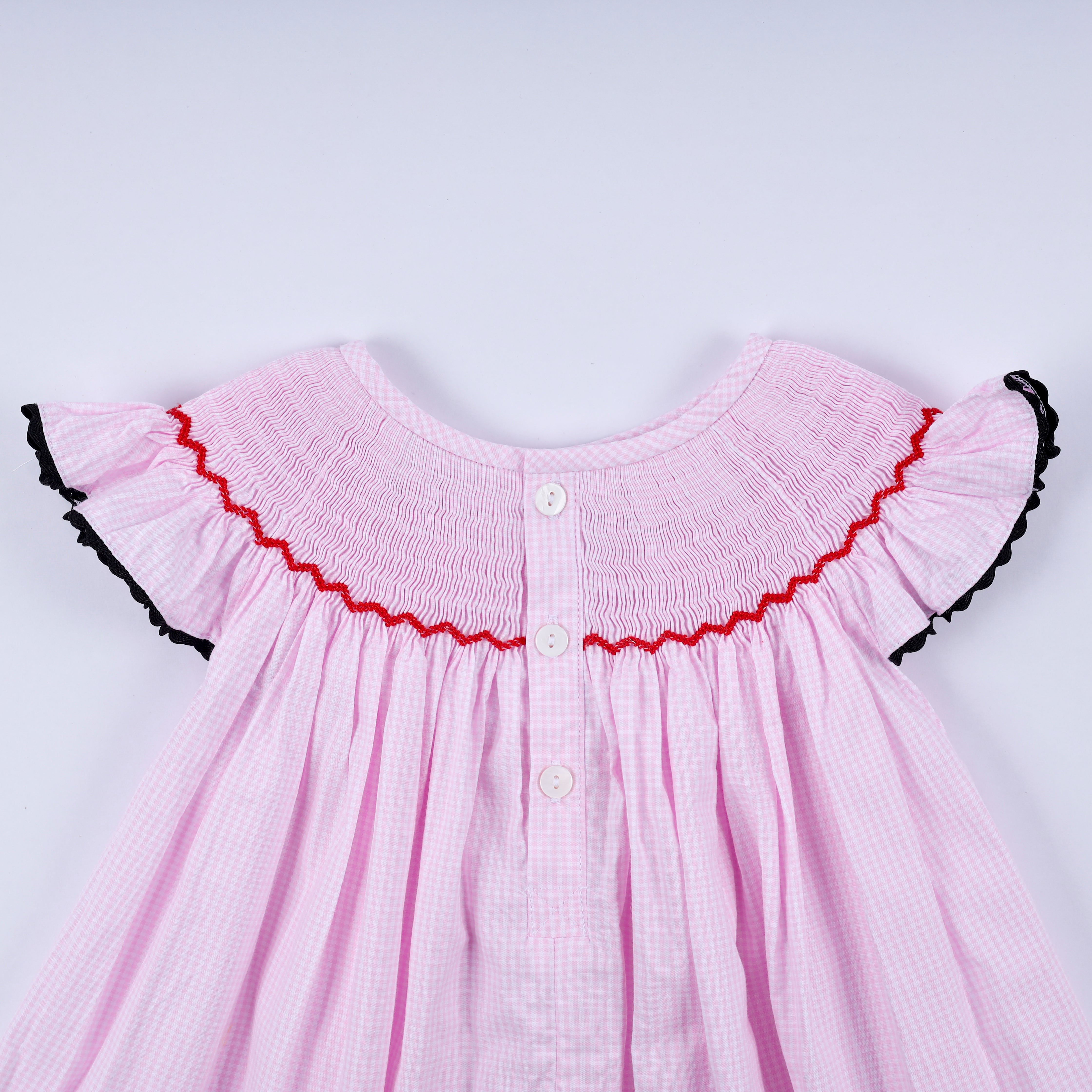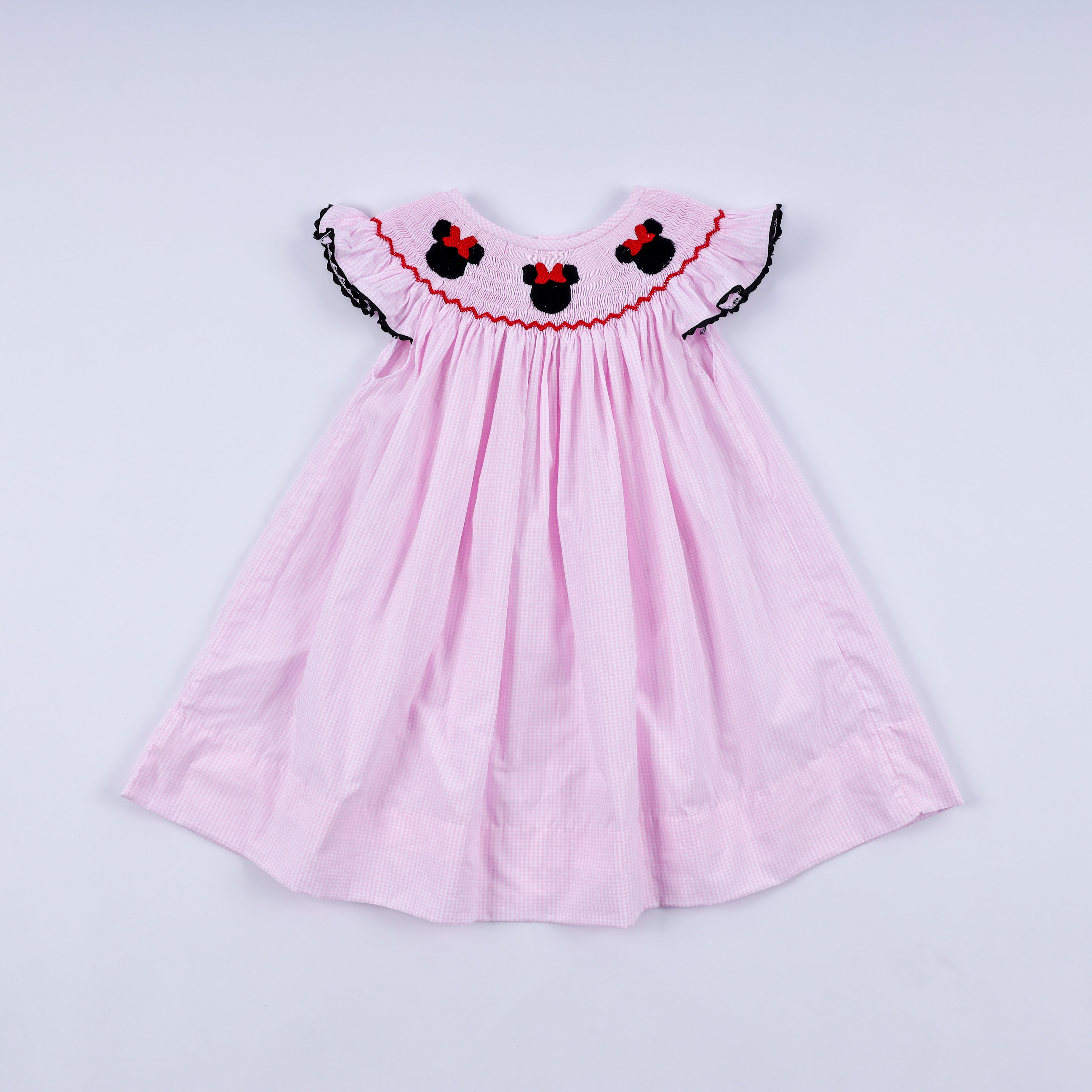 Bring a touch of classic charm and a sprinkle of magic to her wardrobe with our Red Bow Minnie Magic Smocked Plaid Dress! This darling pink plaid dress features beautifully hand-smocked Minnie silhouettes, each accented with sweet red bows for the perfect pop of color.
