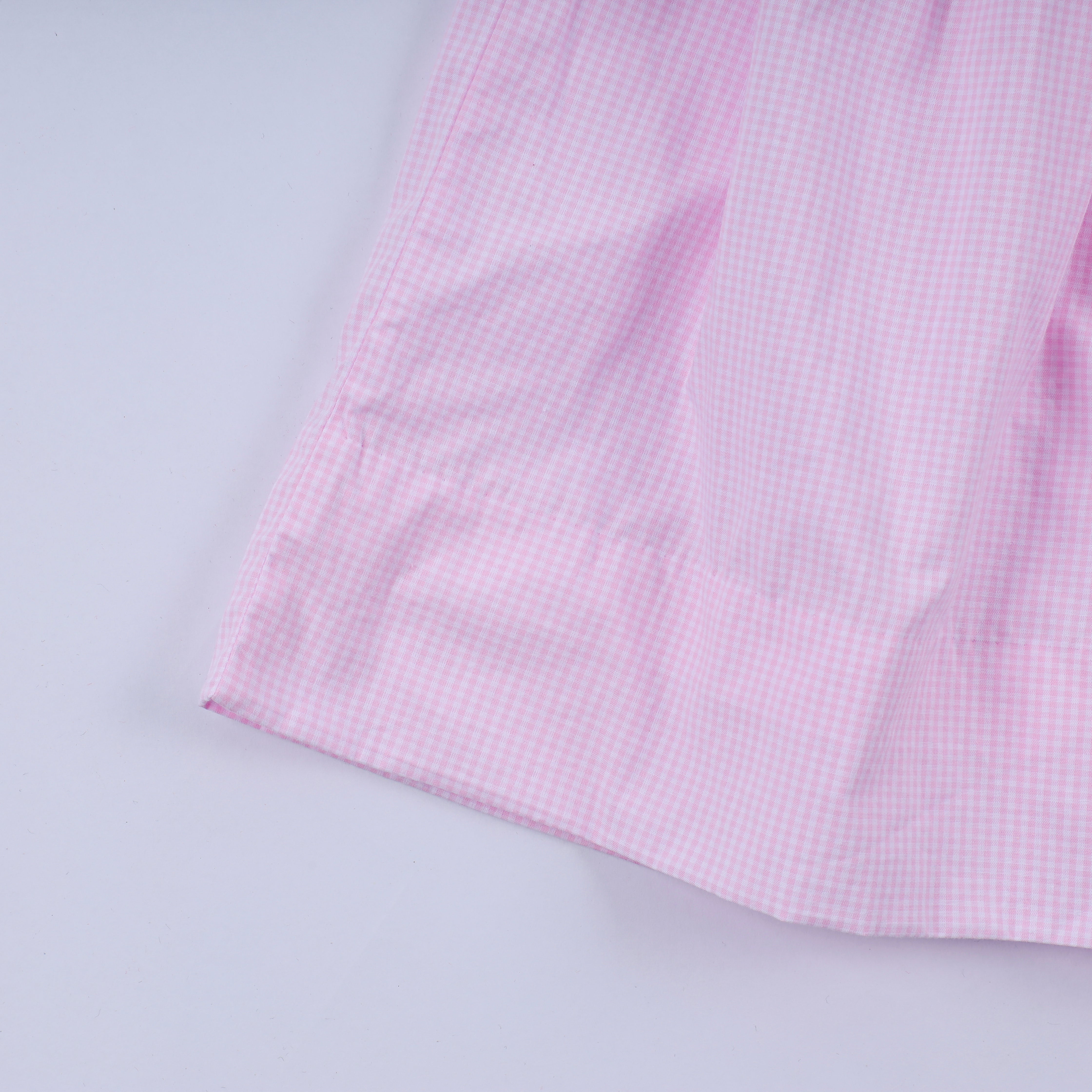 Pink micro-plaid fabric that’s soft, breathable, and perfect for year-round wear