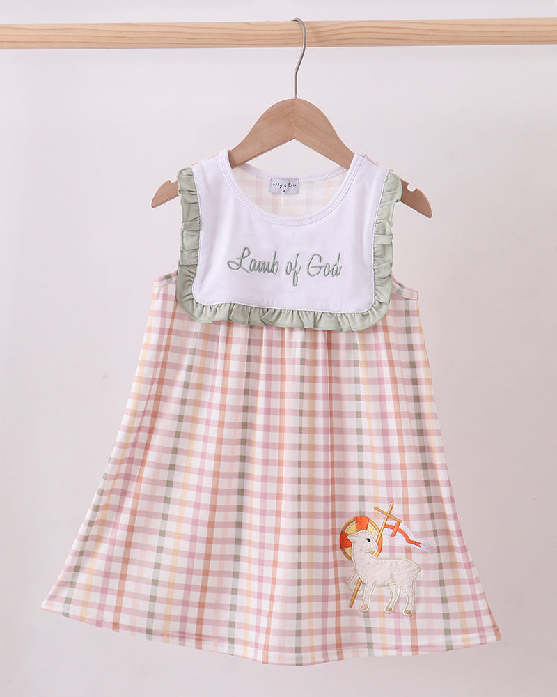 Sweetly symbolic and beautifully made, the Precious Lamb of God Plaid Ruffle Dress is a timeless faith-inspired piece your little girl will cherish. Featuring soft pastel plaid, gentle ruffle trim, and delicate “Lamb of God” embroidery, this dress blends meaningful design with classic boutique style.
