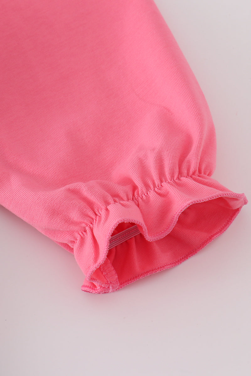 Make her holidays merry and bright with our Blooming Christmas Tree Smocked Jumpsuit Girl Romper Set. Featuring a smocked Christmas tree design, cheerful floral and ornament print, and playful pink ruffle trim, this jumpsuit captures the magic of the season. The Peter Pan collar and puff sleeves add a sweet, classic touch while the comfy fit keeps her cozy all day. Perfect for Christmas parties, photos, or family gatherings, this festive romper will be a holiday favorite!