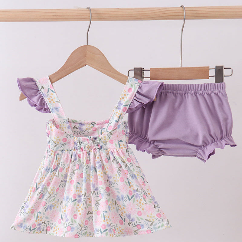 Lila Floral Smocked Ruffle Bloomer Set