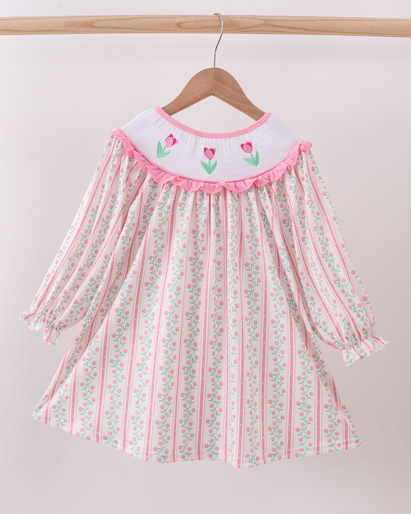 Let her twirl into spring with the Sweet Tulip Trail Smocked Ruffle Dress — a picture-perfect outfit for your little blossom! 🌷