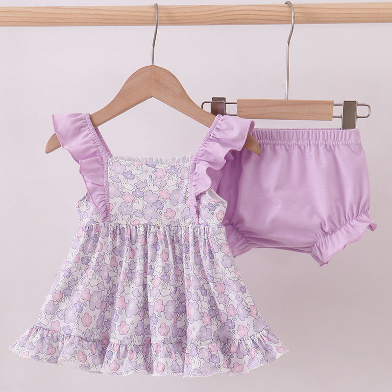 Delicate, darling, and made for sweet spring moments, the Violet Floral Smocked Ruffle Bloomer Set is a picture-perfect outfit for your little girl. Featuring a soft violet floral print, stretchy smocked bodice, and charming ruffle straps, this set blends comfort with timeless boutique style.