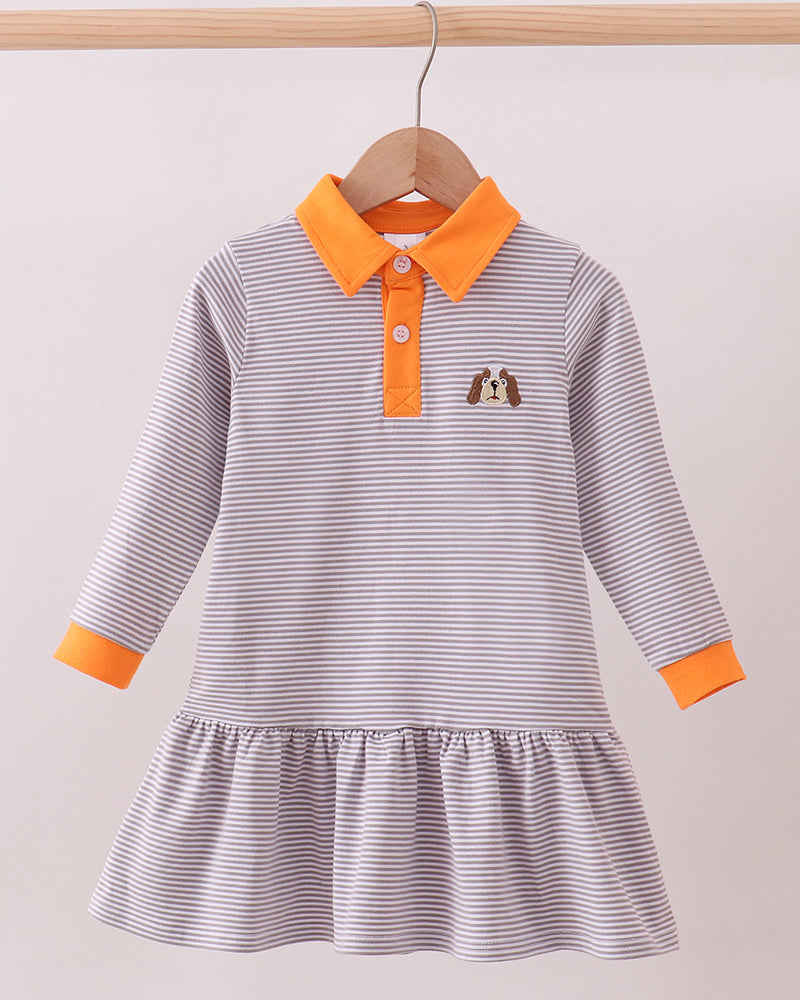 Get your little fan game-day ready with our Rocky Top Game Day Stripe Dress! This sweet and sporty dress brings Tennessee spirit to life with classic grey stripes, bold orange accents, and the cutest puppy embroidery. Perfect for cheering on the Vols, tailgate fun, and adorable everyday wear!