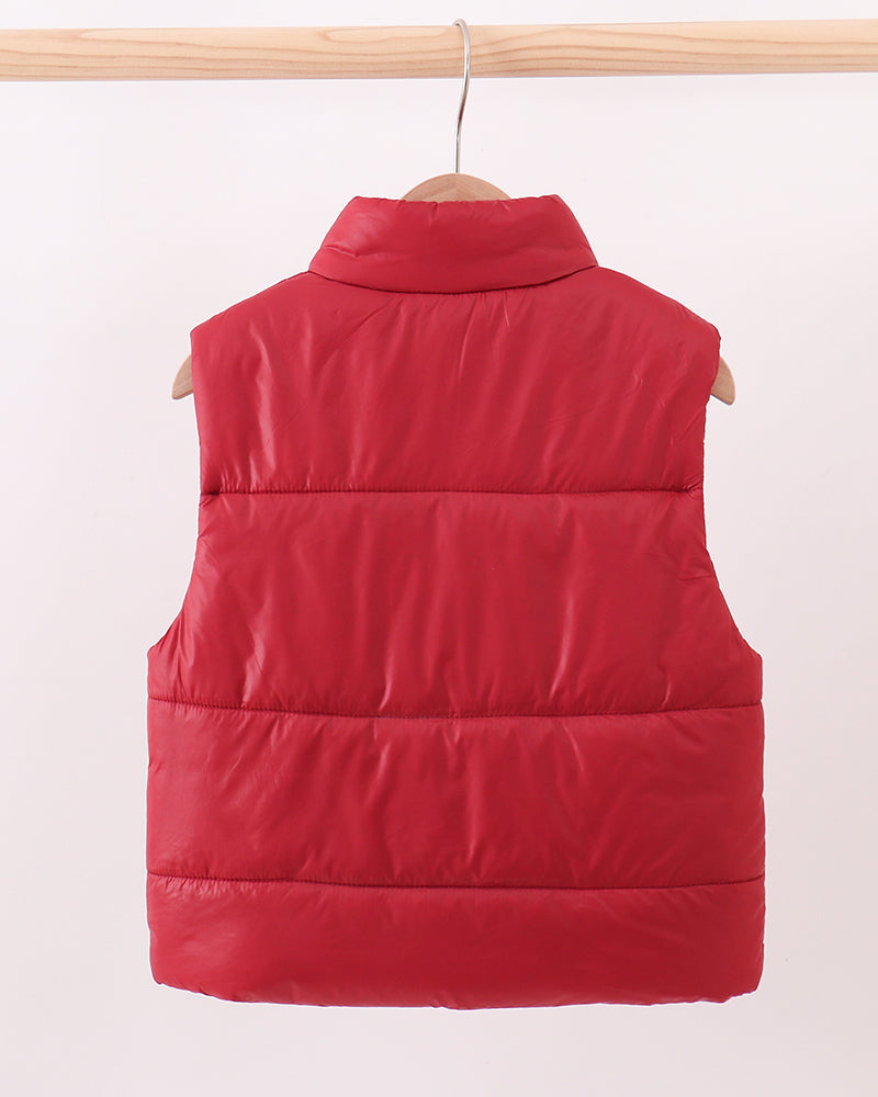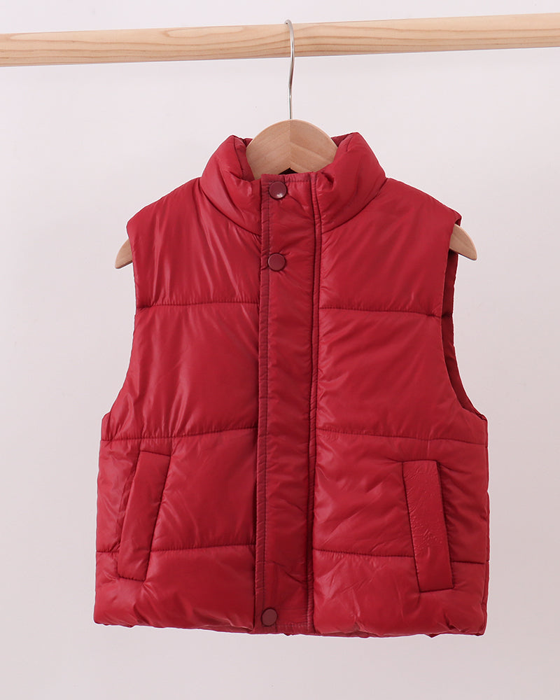 Designed in a rich crimson hue, each vest features a stand collar, smooth front closure, and practical side pockets for everyday convenience. Wear them over sweaters, flannels, or long sleeves for effortlessly cute cold-weather outfits.