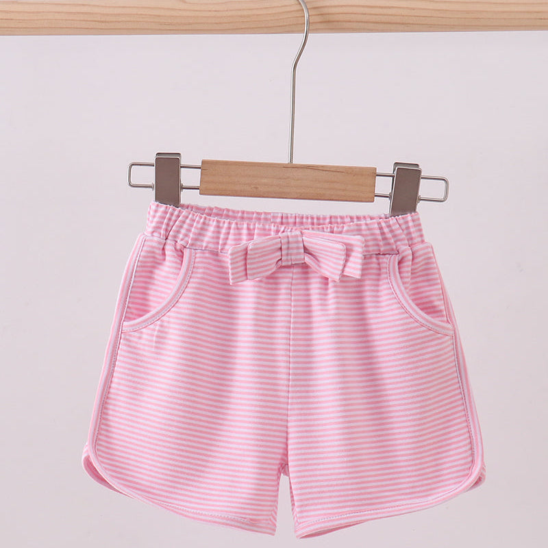 The Elynn Pink & White Stripe Bow Shorts are the perfect blend of comfort and sweetness. Designed with a soft pink and white stripe pattern, these adorable shorts feature a darling front bow detail and a gently elastic waistband for an easy, pull-on fit.