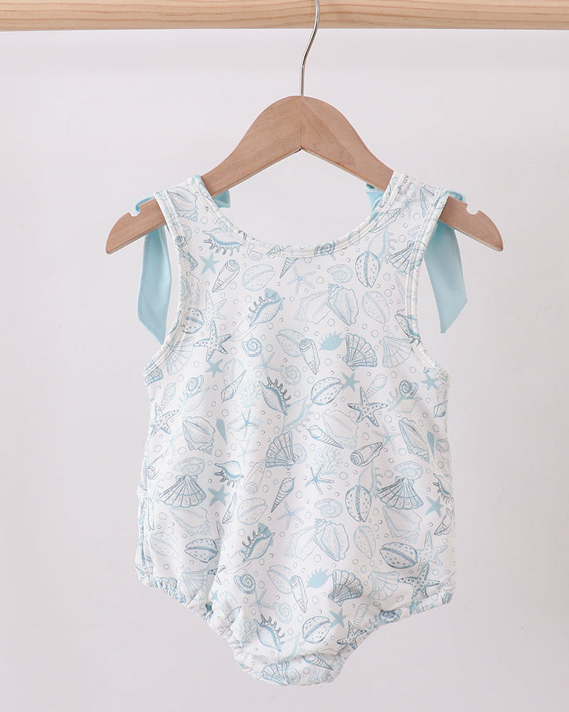 The Ocean Breeze Seashell Bow Swimsuit is a charming one-piece designed especially for toddlers who love to splash and play. Featuring a soft seashell and starfish print in calming ocean hues, this swimsuit is finished with adorable bow-tie shoulder straps for a playful, polished look.